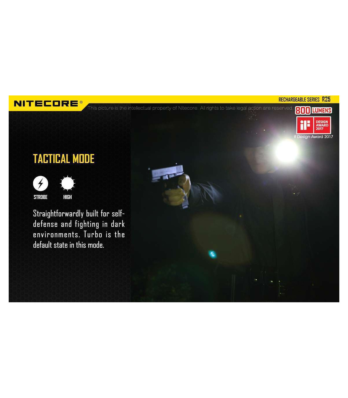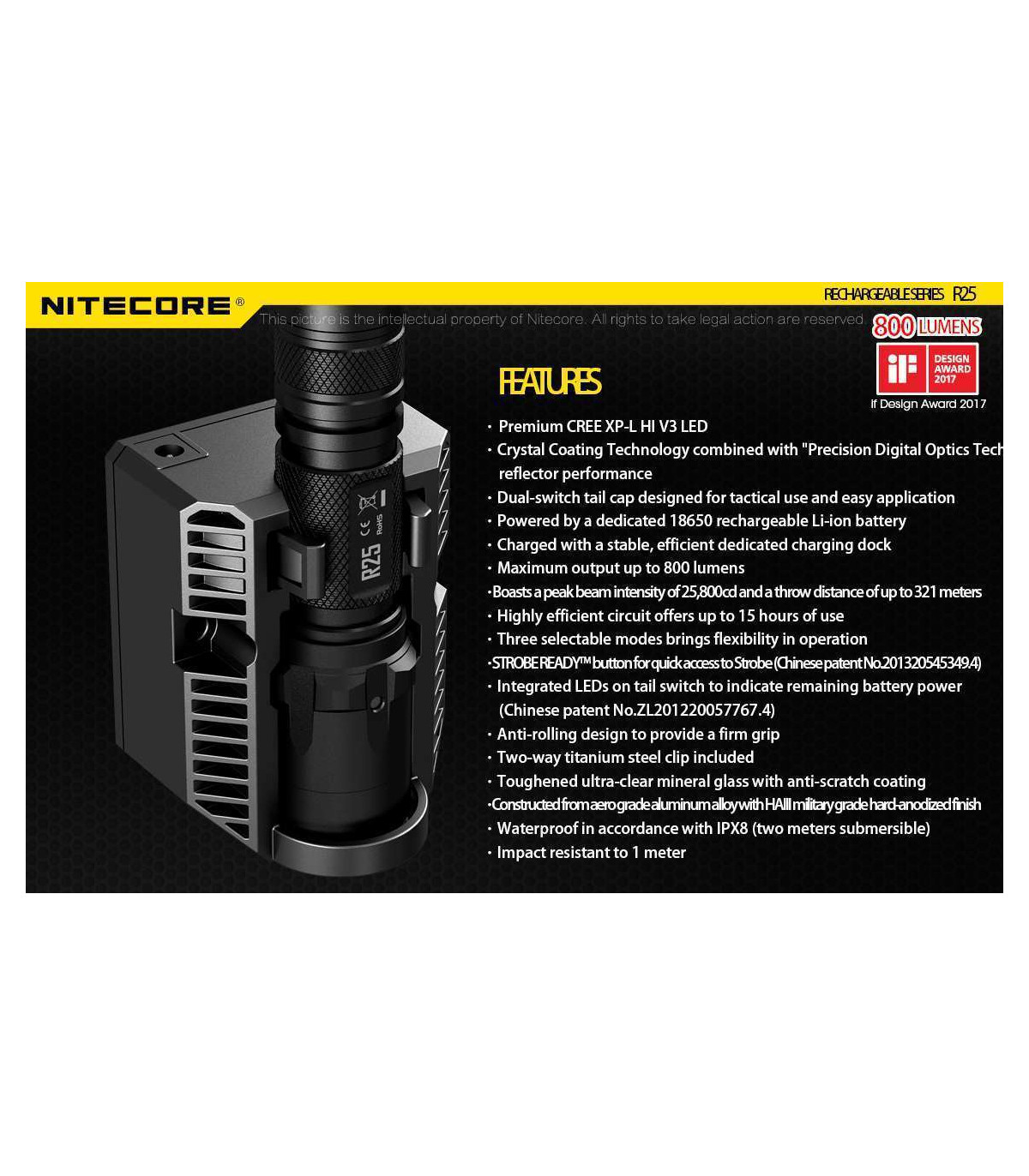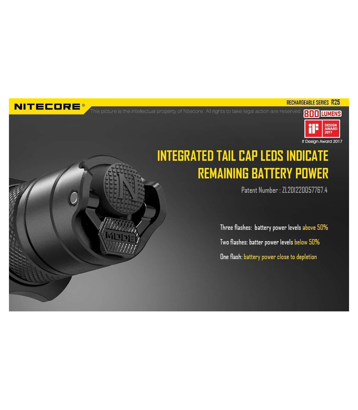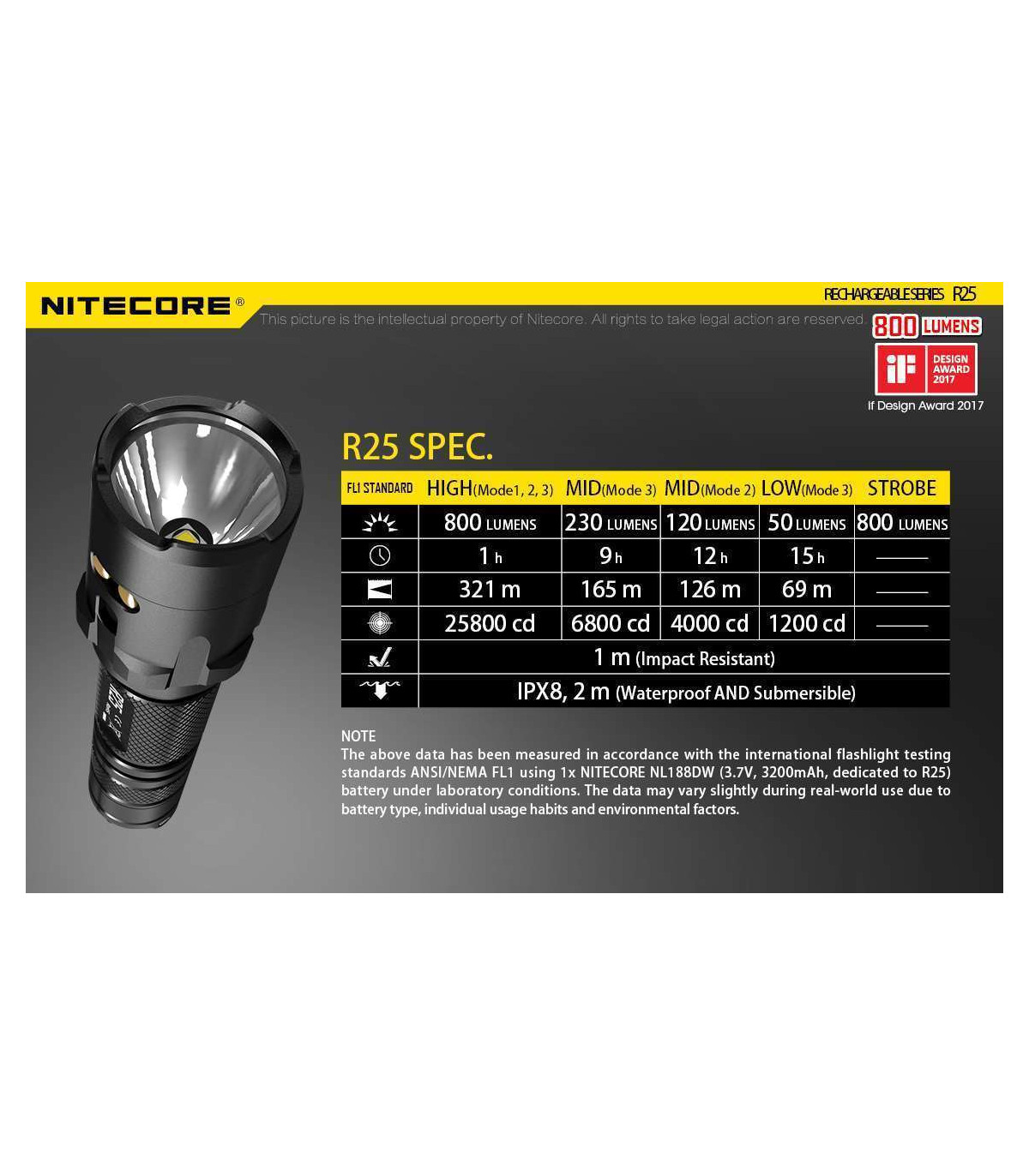 Powered by a 26650 battery